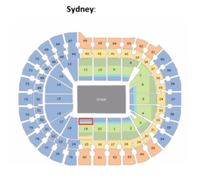 VIP seating allocations in each market are highlighted by the red rectangle in the seating map below.
