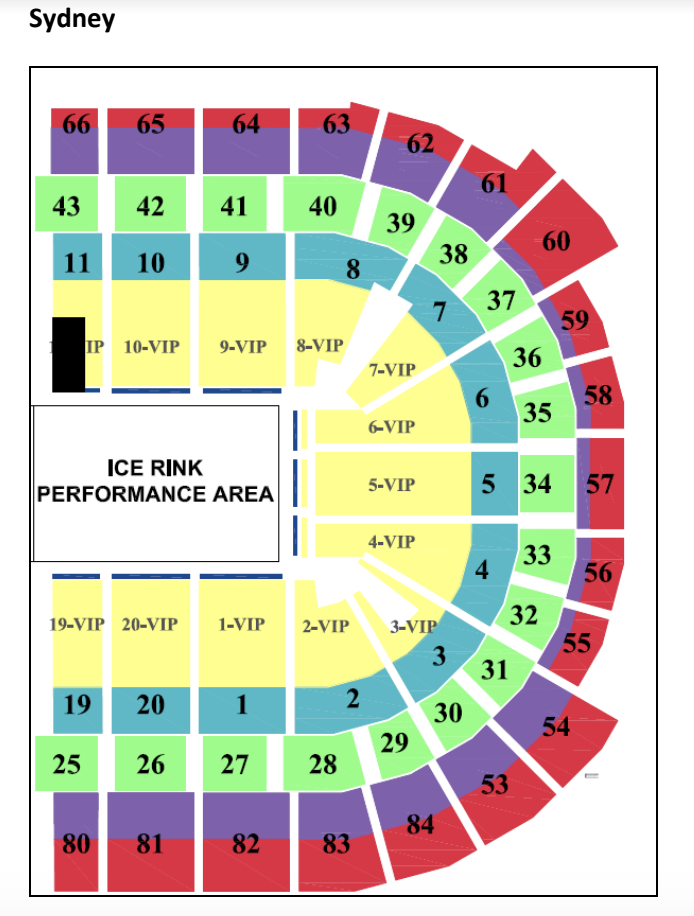 VIP seating allocations are highlighted black in the seating map below. Note – this should be used as a guide only, exact locations are provided on the Ticketek site.
