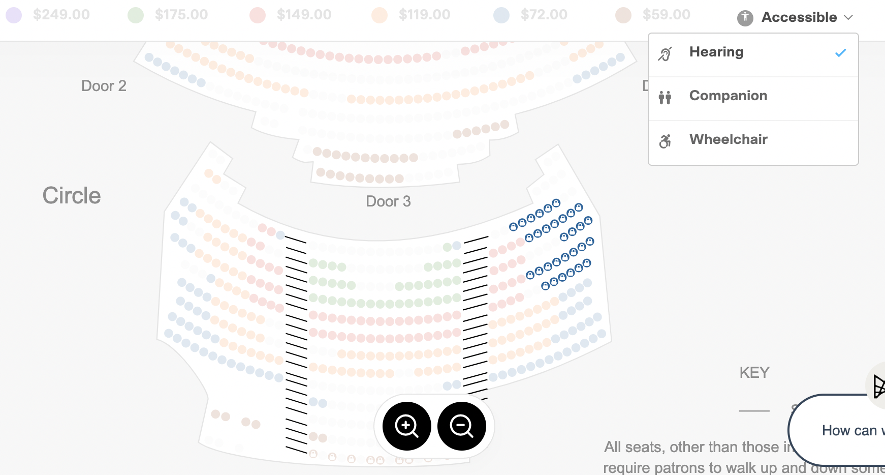 Here is a seating map showing the seats in Auslan zone